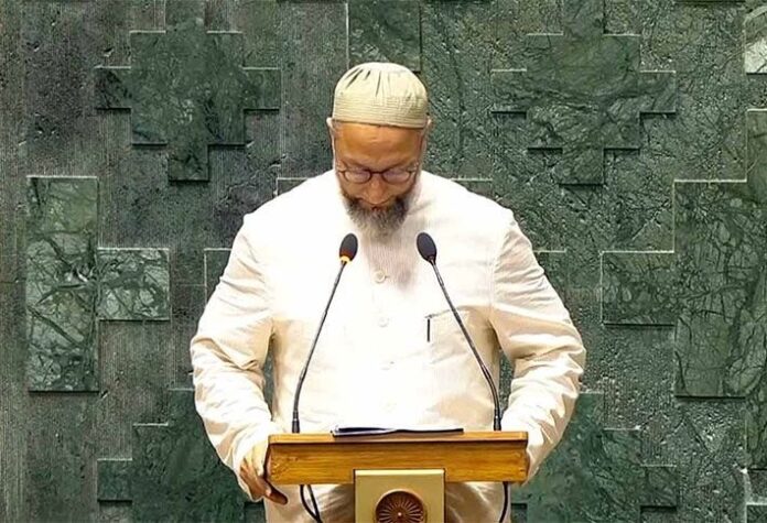 नई दिल्ली । ऑल इंडिया मजलिस-ए-इत्तेहादुल मुस्लिमीन (एआईएमआईएम) के प्रमुख एवं हैदराबाद से सांसद असदुद्दीन ओवैसी ने मंगलवार 25 जून को सांसद पद की शपथ लेने के दौरान ‘जय फिलिस्तीन’ का नारा लगा कर एक नए विवाद को जन्म दे दिया है। वैसे सांसद ओवैसी अपने वक्तव्य से सदैव विवादों में रहना चाहते हैं, क्योंकि इन विवादित वक्तव्यों का उन्हें राजनीतिक लाभ मिलता है किंतु इस बार बात सिर्फ विवाद में रहने के लिए ‘जय फिलिस्तीन’ कहने भर की नहीं है, बात भारत की गणराज्य के रूप में संप्रभुता एवं उसके प्रति एक सांसद के रूप में अपनी प्रतिबद्धता की भी है। यही कारण है कि देश भर में उनके इस आचरण का विरोध हो रहा है। राजनेताओं, आमजन, सामाजिक लोगों के साथ कानून के विशेषज्ञ भी मानते हैं कि राष्ट्रपति चाहें तो उनके इस व्यवहार के लिए संसद सदस्यता भी रद्द कर सकती हैं।