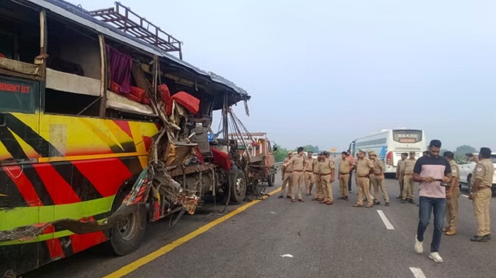 यूपी के उन्‍नाव में एक्सप्रेस-वे पर बस की दूध के टैंकर से भिड़ंत, 18 की मौत, सड़क पर बिखरे शव