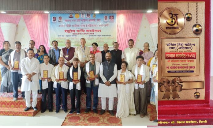 मुंबई: छत्रपति शिवाजी महाराज टर्मिनस में सहायक वाणिज्य प्रबंधक (आरक्षण) के पद पर तैनात शशिधर रामजी त्रिपाठी को केंद्रीय गृह राज्यमंत्री हंसराज अहीर द्वारा स्व.लाजवंती सक्सेना स्मृति पुरस्कार प्रदान किया गया। शशिधर त्रिपाठी को उनकी काव्यरचना ‘ऋतम्भरा’ के लिए प्रदान किया गया। अखिल हिंदी साहित्य सभा, अमरावती द्वारा 30 अक्टूबर 2023 को महाराष्ट्र राज्य हिन्दी साहित्य अकादमी के सहयोग से आयोजित भव्य समारोह में पुरस्कार स्वरूप नकद धनराशि, स्मृतिचिन्ह, अंगवस्त्र, सम्मानपत्र इत्यादि प्रदान किए गए।