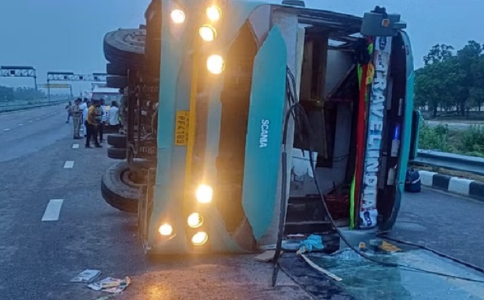 बिहार के मुजफ्फरपुर से एक डबल डेकर बस दिल्ली जा रही थी। यह बस न्यू इंडिया ट्रेवल की बताई जा रही है। बस जब शनिवार की सुबह करीब 4:30 बजे पूर्वांचल एक्सप्रेस वे पर बाजार शुकुल थाना क्षेत्र में किलोमीटर 68 के करीब पहुंची तभी चालक ने नियंत्रण खो दिया और बस अनियंत्रित होकर पलट गई। हादसे में महिलाओं, बच्चों सहित करीब 30 लोग घायल हो गए। जानकारी होने पर पुलिस मौके पर पहुंची। स्थानीय लोगों की मदद से पुलिस ने घायलों को सीएचसी शुक्ल बाजार पहुंचाया। जहां से कुछ लोगों को जिला अस्पताल रेफर कर दिया गया है।