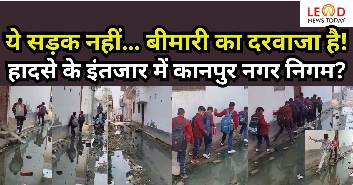 कानपुर: उत्तर प्रदेश की औद्योगिक राजधानी कहे जाने वाले कानपुर महानगर के वार्ड नंबर 27 में विकास के दावों की हकीकत सड़क पर तैरती नजर आ रही है। यहाँ सड़क नहीं, बल्कि गंदे पानी से भरा एक स्थायी जलभराव क्षेत्र बन चुका है। घरों का दूषित पानी महीनों से जमा है। स्थानीय लोग और स्कूली बच्चे, बदबू, फिसलन और बीमारी के खतरे के बीच जीने को मजबूर हैं।