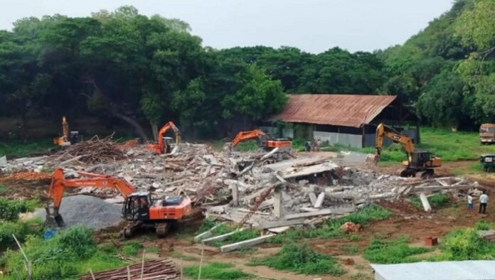 अमरावती। आंध्र प्रदेश में चंद्रबाबू नायडू सरकार और विपक्षी जगन मोहन रेड्डी की वाईएसआरसीपी कांग्रेस पार्टी के बीच राजनीति गरमा गई है। दरअसल वाईएसआर कांग्रेस पार्टी के ताड़ेपल्ली स्थित निर्माणाधीन केंद्रीय कार्यालय को कथित अवैध निर्माण के कारण शनिवार तड़के नगर पालिका अधिकारियों ने ध्वस्त कर दिया। मंगलागिरी-ताडेपल्ली नगर निगम (एमटीएमसी) द्वारा उत्खनन मशीनों और बुलडोजरों का उपयोग करके की गई यह तोड़फोड़, राजधानी क्षेत्र विकास प्राधिकरण (सीआरडीए) द्वारा एक नोटिस के बाद शुरू हुई, जिसमें कार्रवाई के पीछे अनधिकृत निर्माण को कारण बताया गया था।
