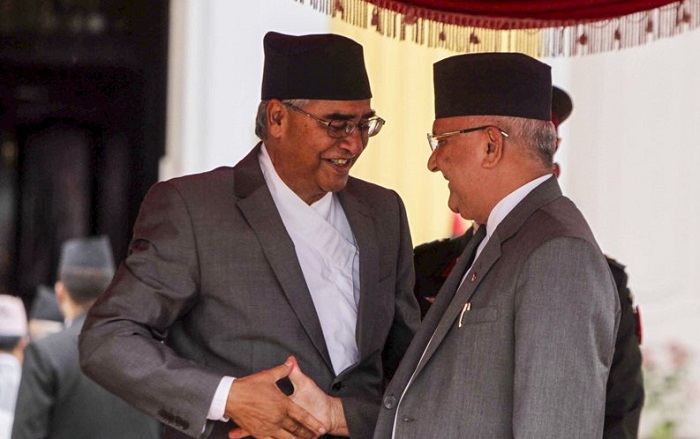 काठमांडू । नेपाल में दो बड़े राजनीतिक दलों के बीच बने सत्ता गठबन्धन को आगामी चुनाव तक कायम रखने और चुनाव में माओवादी के साथ गठबन्धन नहीं कर अकेले-अकेले चुनाव लड़ने की शर्त पर सहमति हुई है।