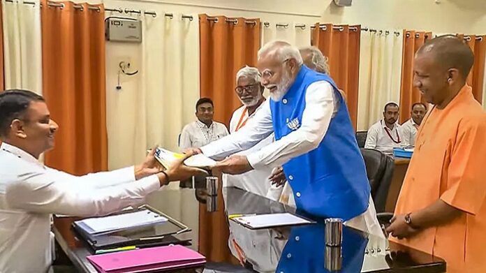 वाराणसी । भाजपा के वरिष्ठ नेता एवं प्रधानमंत्री नरेन्द्र मोदी ने वाराणसी लोकसभा सीट से लगातार तीसरी बार पार्टी उम्मीदवार के रूप में मंगलवार को नामांकन पत्र दाखिल किया। वाराणसी सीट पर सातवें एवं अंतिम चरण में 01 जून को मतदान होगा। मंगलवार को सातवें चरण के नामांकन का अंतिम दिन था।