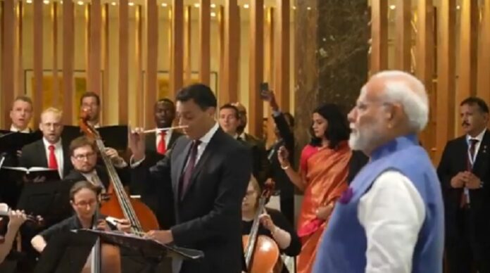 वियना। प्रधानमंत्री नरेंद्र मोदी का ऑस्ट्रिया पहुंच गए हैं। उनका शानदार स्वागत किया गया है। एयरपोर्ट पर उतरते ही ऑस्ट्रेलिया के चांसलर कार्ल नेहमर ने गले लगाया और उनके साथ सेल्फी ली और पारंपरिक अंदाज में स्वागत किया। पीएम मोदी जब वियना के होटल रिट्ज-कार्लटन पहुंचे तो वहां पर ऑस्ट्रियाई कलाकारों ने उनके स्वागत में वाद्य यंत्रों के साथ वंदे मातरम गाकर हर किसी को मंत्र मुग्ध कर दिया। पीएम मोदी भी इस शानदार स्वागत के मुरीद हो गए। बीते 40 वर्षों में किसी भारतीय प्रधानमंत्री की यह पहली ऑस्ट्रिया यात्रा है।