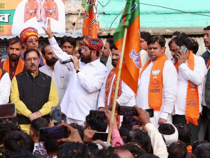 Rajasthan Assembly Election 2023: गुरुवार को एकनाथ शिंदे ने राजस्थान जाकर बीजेपी के प्रत्याशियों के लिए वोट मांगें। महाराष्ट्र की तरह राजस्थान में भी मुख्यमंत्री एकनाथ शिंदे ने मतदाताओं से डबल इंजन सरकार लाने की अपील की। एकनाथ शिंदे ने यह भी विश्वास जताया कि इस चुनाव में मतदाता भारतीय जनता पार्टी के उम्मीदवारों को वोट देकर राजस्थान में बदलाव जरूर लाएंगे। एकतरफ जहां पांच राज्यों में विधानसभा चुनाव के लिए प्रचार जोरों पर है, वहीं दूसरी तरफ मुख्यमंत्री एकनाथ शिंदे ने आज राजस्थान में बीजेपी उम्मीदवारों के लिए जमकर प्रचार किया।