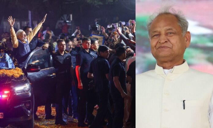 मुख्यमंत्री अशोक गहलोत पर निशाना साधते हुए नरेंद्र मोदी ने कहा, अब से एक हफ्ते बाद राजस्थान में चुनाव होने वाले हैं। हर तरफ बस एक ही गूंज है कि बीजेपी की सरकार आएगी। मोदी ने कहा कि यहां कुछ लोग खुद को जादूगर कहते हैं।